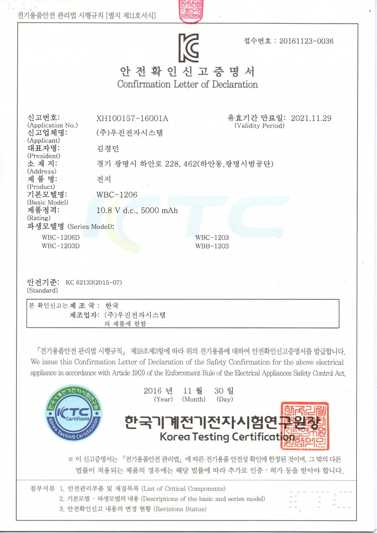 전지 안전확인신고증명서 페이지 정보 작성자 관리자 댓글 0건 조회 432회 작성일 19-04-05 14:05 이전글 목록 본문 전지 안전확인신고증명서 목록 댓글목록 댓글목록 등록된 댓글이 없습니다.